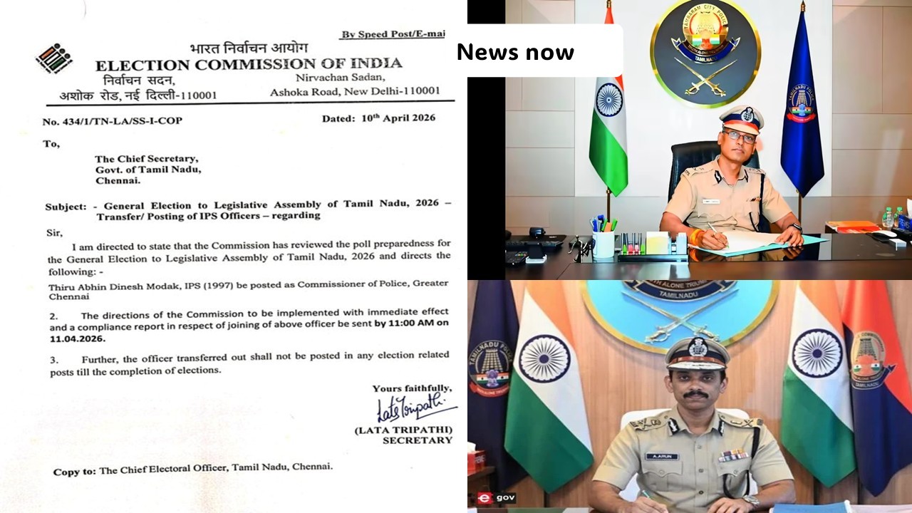 தமிழகச் சட்டமன்றத் தேர்தல் நடவடிக்கைகள் தீவிரமடைந்துள்ள நிலையில், சென்னை மாநகரக் காவல் ஆணையர் ஏ. அருணை அதிரடியாக இடமாற்றம் செய்து இந்தியத் தேர்தல் ஆணையம் இன்று (வெள்ளிக்கிழமை) உத்தரவிட்டுள்ளது. அவருக்குப் பதிலாக, புதிய காவல் ஆணையராக அபின் தினேஷ் மோடக் நியமிக்கப்பட்டுள்ளார். மேலும், இடமாற்றம் செய்யப்பட்ட ஏ. அருணை, தமிழகச் சட்டமன்றத் தேர்தல் பணிகள் முடியும் வரை தேர்தல் தொடர்பான எந்தப் பொறுப்புகளிலும் நியமிக்கக் கூடாது என்றும் தேர்தல் ஆணையம் திட்டவட்டமாக அறிவுறுத்தியுள்ளது. தேர்தல் அமைதியாகவும், நடுநிலையாகவும் நடப்பதை உறுதி செய்யும் நோக்கில் இந்த அதிரடி நடவடிக்கை மேற்கொள்ளப்பட்டுள்ளதாகத் தெரிகிறது.