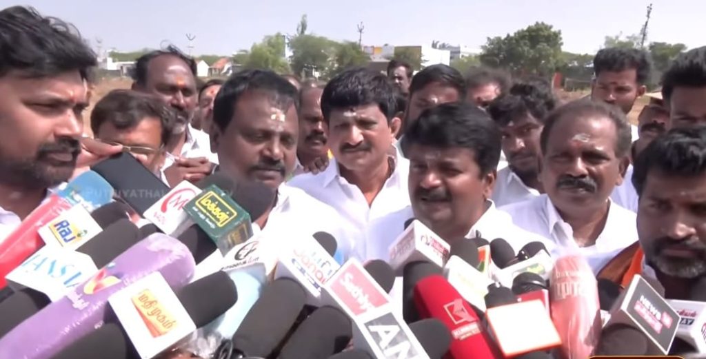 கருப்பு முருகானந்தம் விஜயபாஸ்கர் ஆகியோர் பந்தக்கால் நடும் விழாவை தொடங்கி வைத்தனர்.