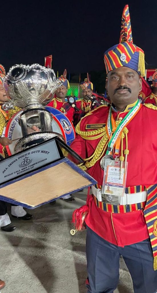 மாநில அளவில் நடைபெற்ற போலிஸ் வாத்திய இசை குழு போட்டியில் தமிழகத்தை சேர்ந்த கோவை மாவட்டம் ஆனைமலை சரவணம்பட்டி காவலர் இரண்டாம் இடம்!
